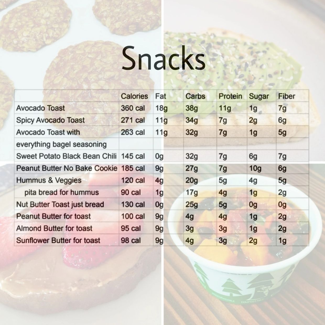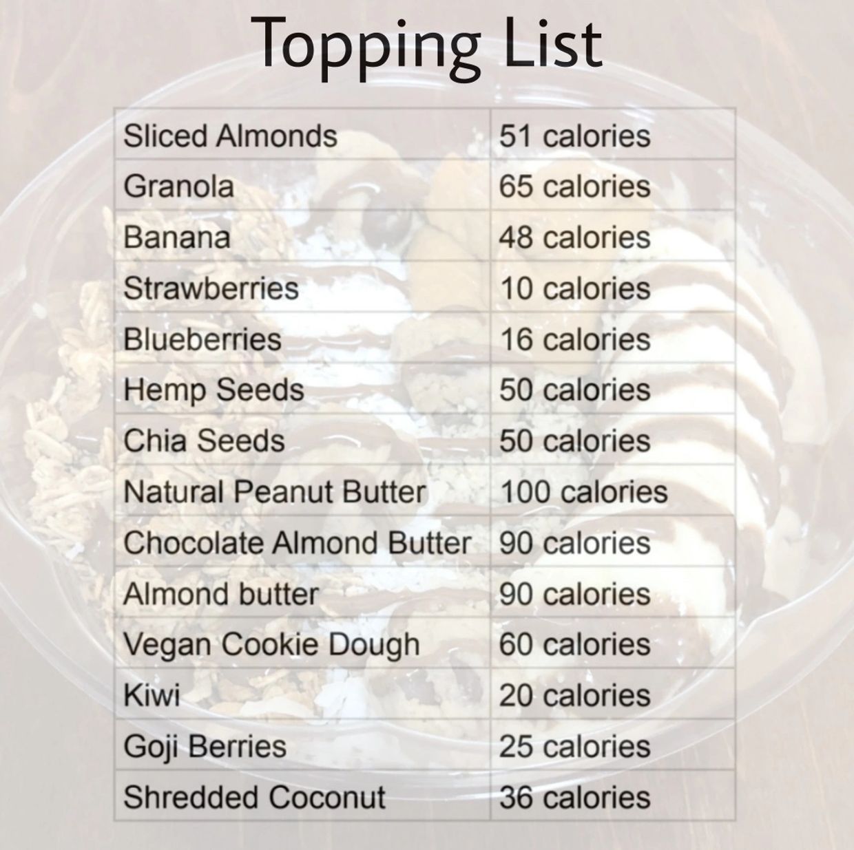 Calories and macros vary depending on milk choice. The Smoothies listed are based on coconut milk.